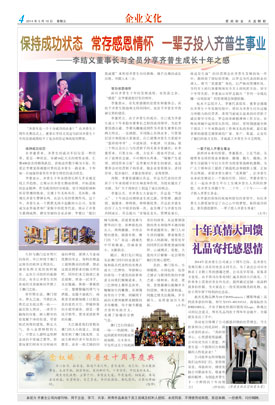 保持成功狀態 常存感恩情懷 一輩子投入齊普生事業 ——李結義董事長與全員分享齊普生成長十年之感